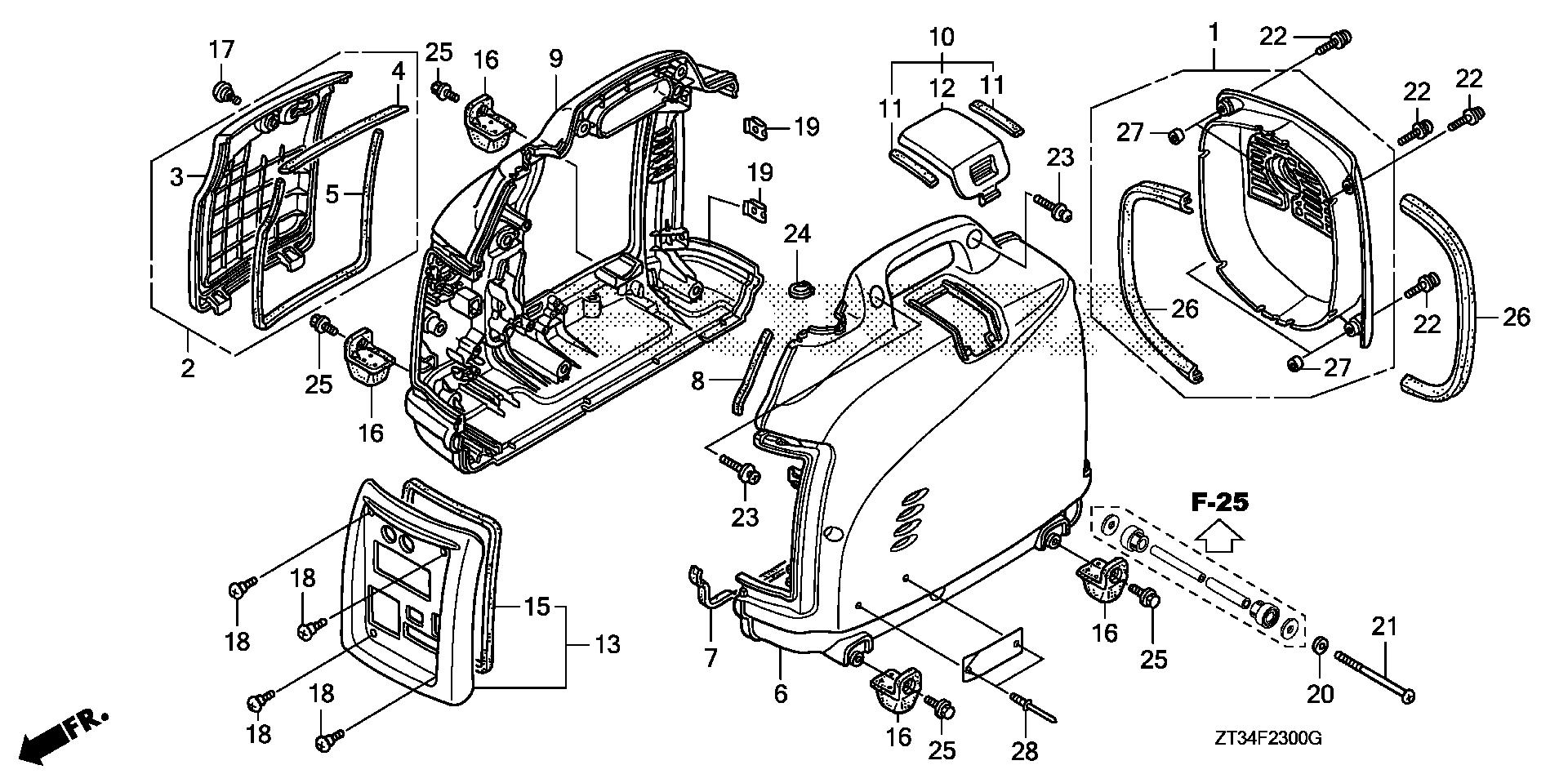 Generators EU EU1000 EU1000I A EZGA-1000001-1012733 FRONT COVER@SIDE COVER - Blue Mountain Small Engine & Repair